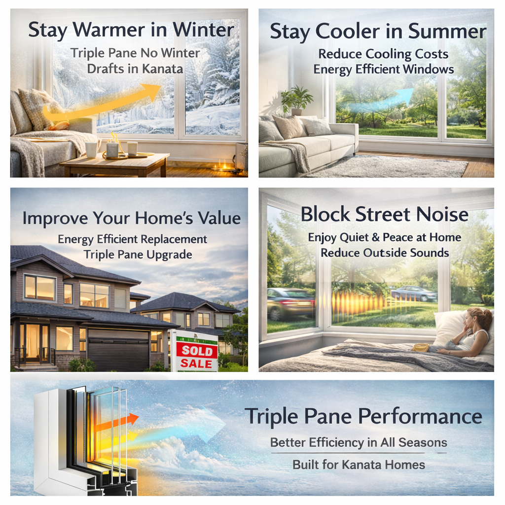 Older windows can allow heat to escape during Ottawa’s freezing winters. Modern triple pane windows significantly reduce heat loss and improve insulation — helping you save money year-round.